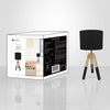 The Shilo 3-Legged Table Lamp from the Xtricity Collection brings modern elegance to your decor. This unique table lamp combines wood and black with finesse. Equipped with an E26 25W Max base, it offers personalized brightness. The 1.5 m cord makes it easy to install. Although the bulb is not included, this lamp allows you to create a warm atmosphere. With harmonious dimensions, it adds a distinctive presence to your space. Redefine your interior with this lamp which combines refined design and luminous functionality.
