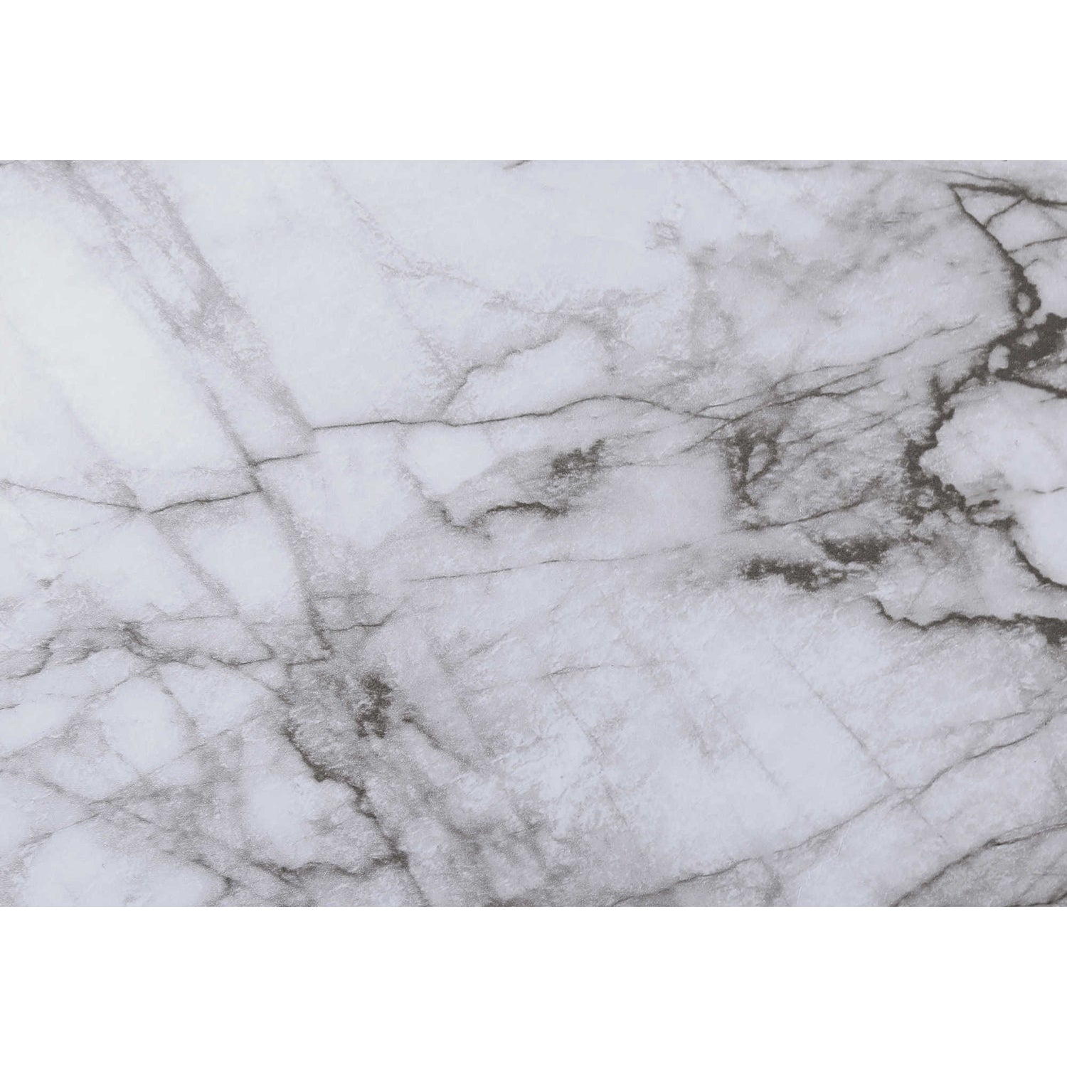 - Enjoy a casual family meal with this 5-piece dining set featuring a 40-inch rectangular table with a fashionable white marble-look laminate top and black metal legs, in a contemporary setting.