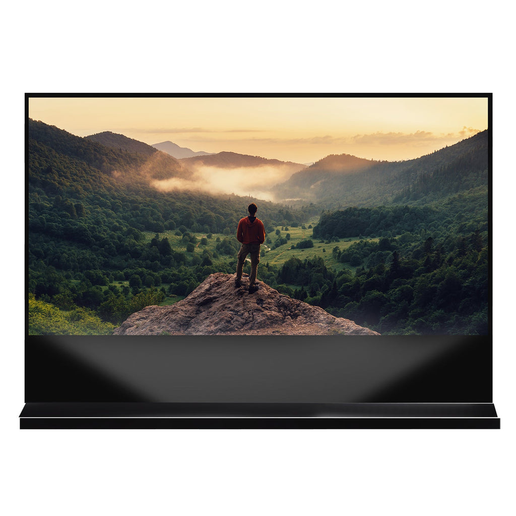 Meet the Aurora 8K, a motorized floor-standing ALR projection screen, specially designed for ultra-short throw projectors. Enjoy 8K projection at a reduced distance, saving space while delivering 900% better image quality thanks to Nano Lens technology. Its sleek design pops out and retracts easily, transforming your space into a captivating home theater. With a high-contrast optical layer, stabilization layer and nano-lenses, this display offers maximum color reproduction and exceptional durability.