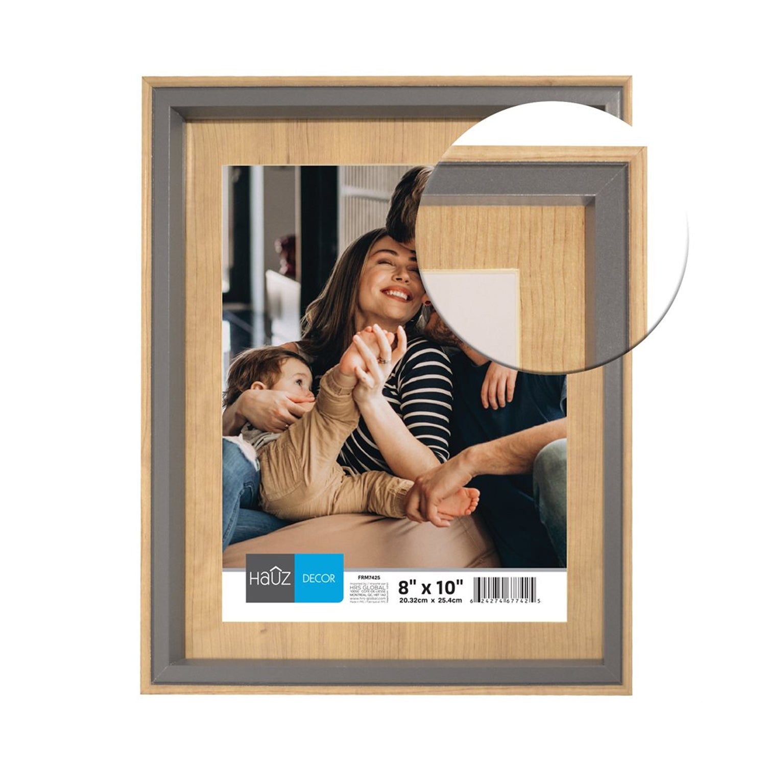 Hauz FRM7425 - 8x10 Picture Frame Light Wood Look With Grey BorderItem: 80-FRM7425