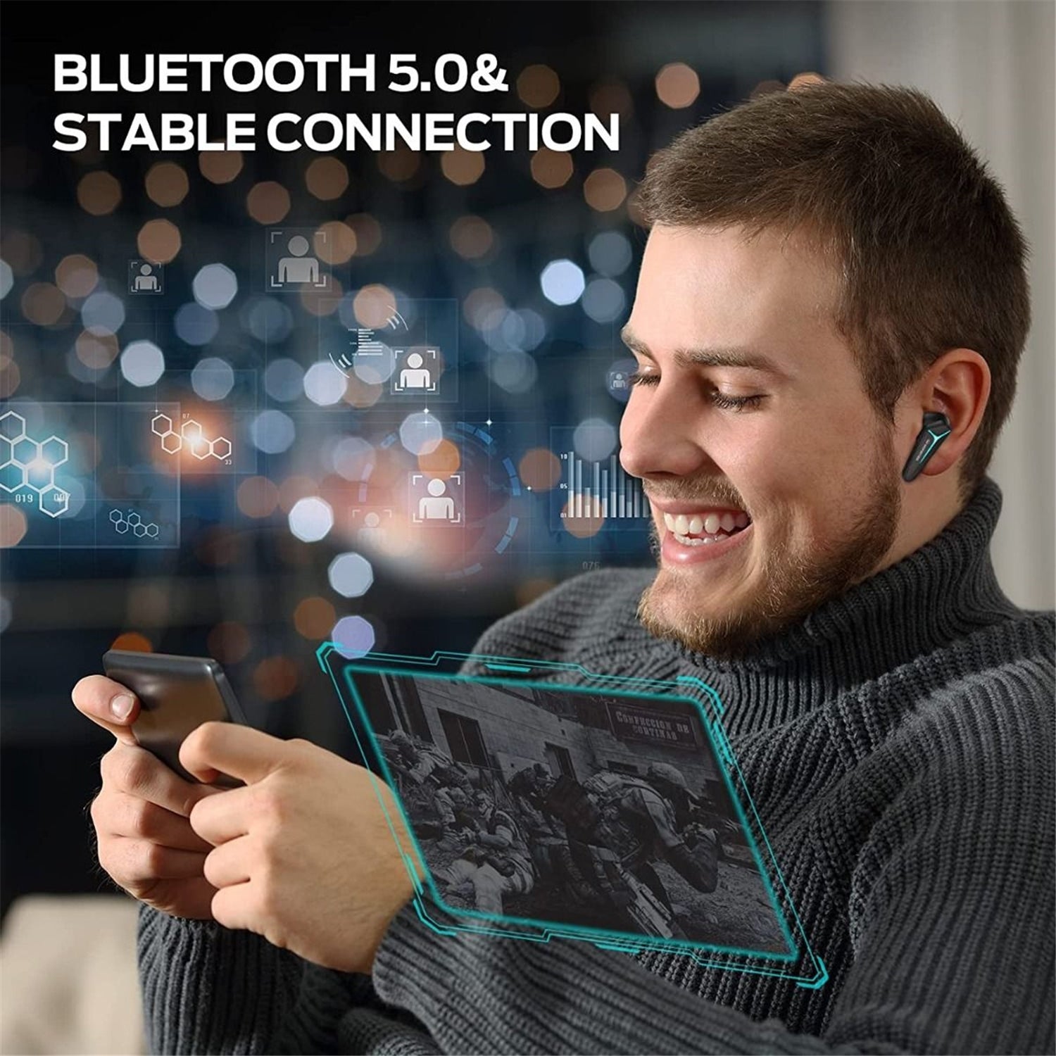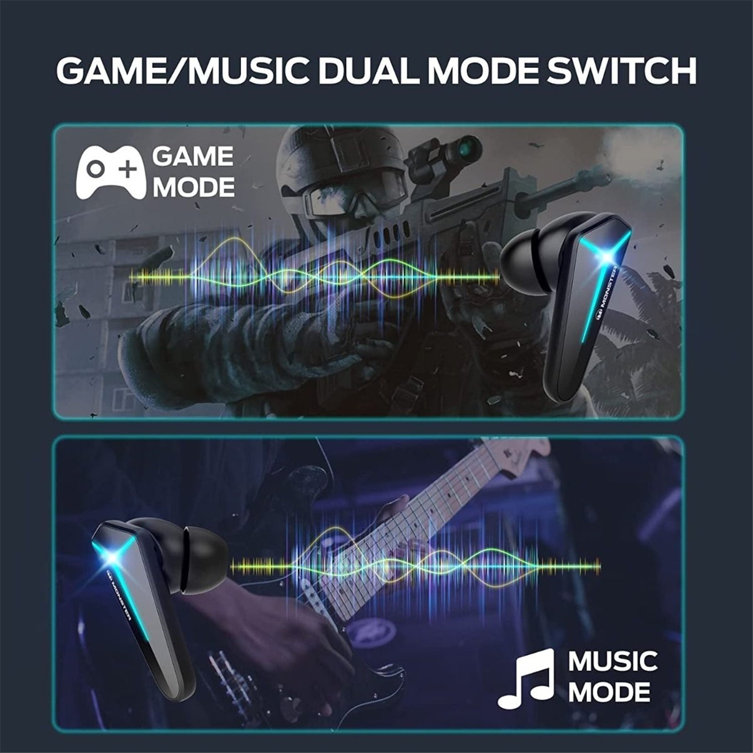 .Gaming Mode and Single/Dual Mode: The latest Bluetooth 5.0 technology and dual-channel transmission ensure a fast and ultra-stable connection. Cool RGB lighting on the earbuds accentuates the gaming mood. Tap the earbuds 3 times quickly to change game or music mode.