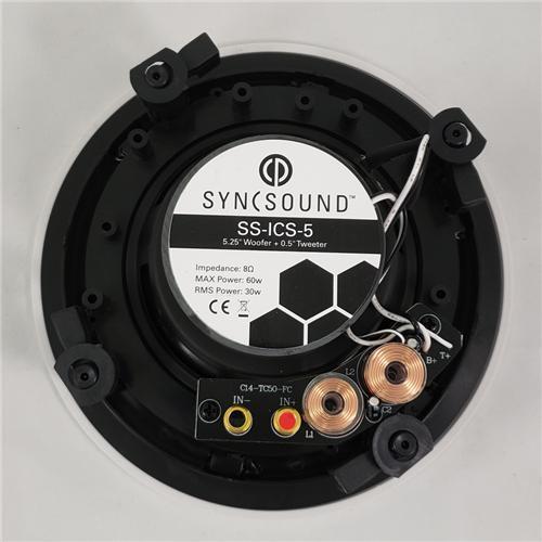 SyncSound SS-ICS-5 2-Way In-Ceiling Speakers 5.25" 60 Watts 8 Ohms Sold As A Pair White FramelessItem: 25-0078