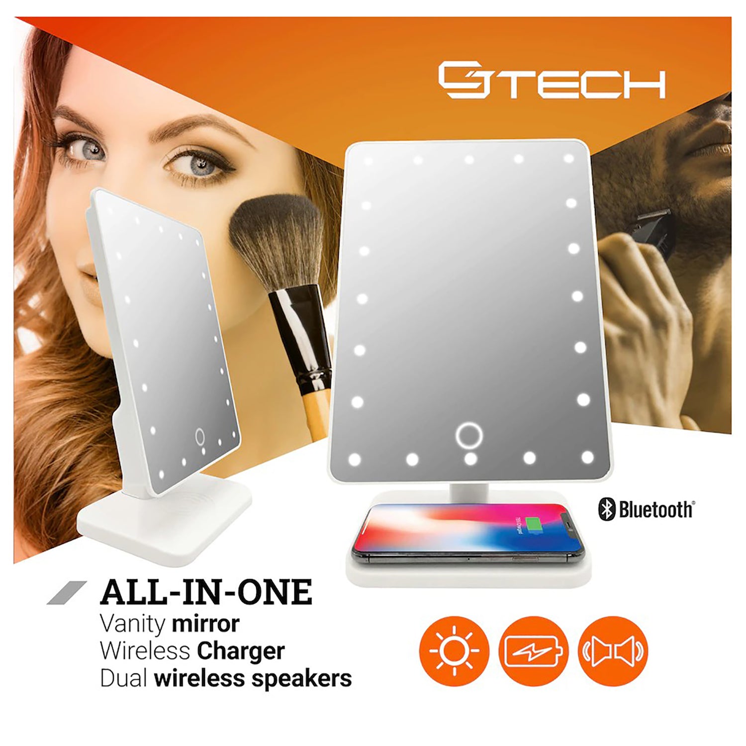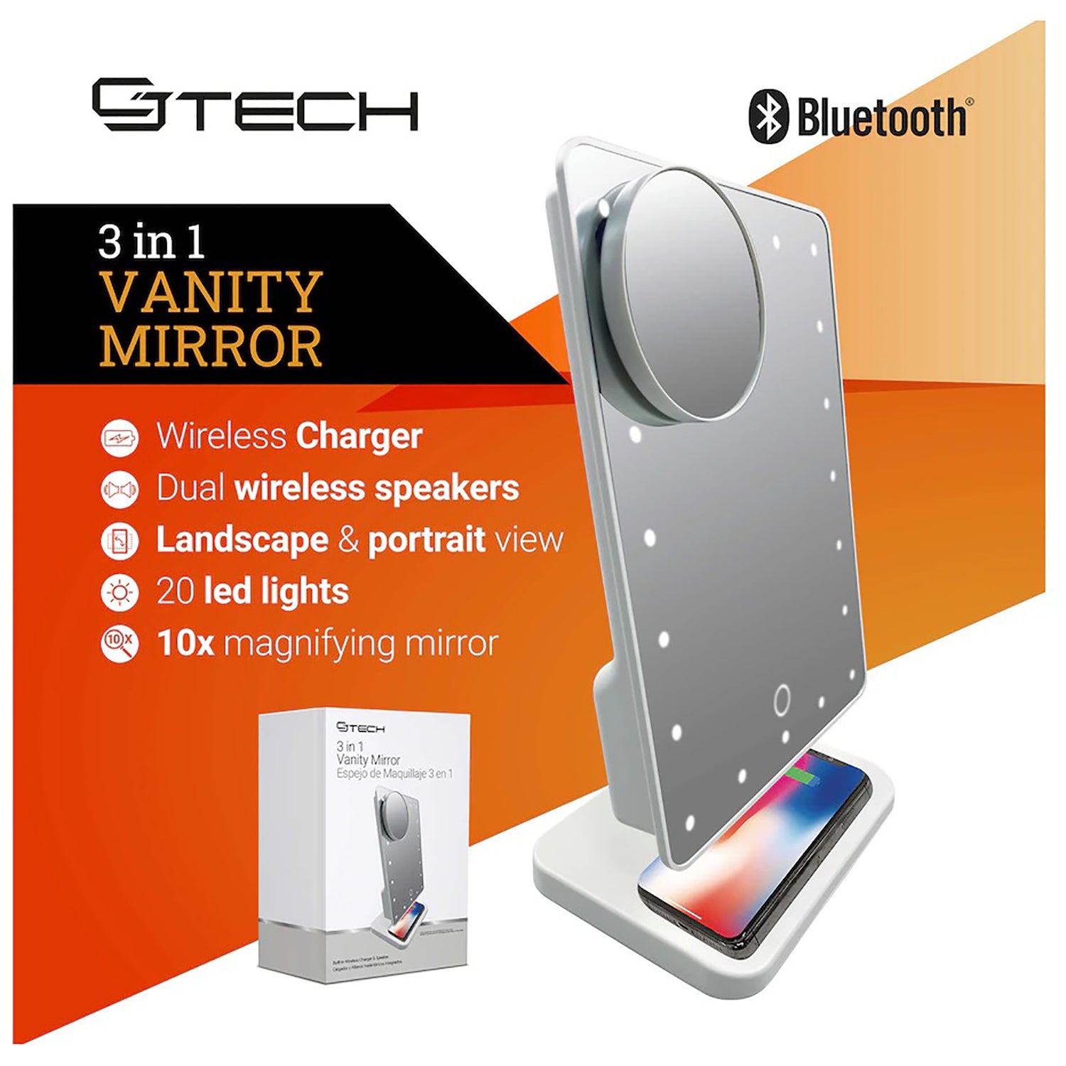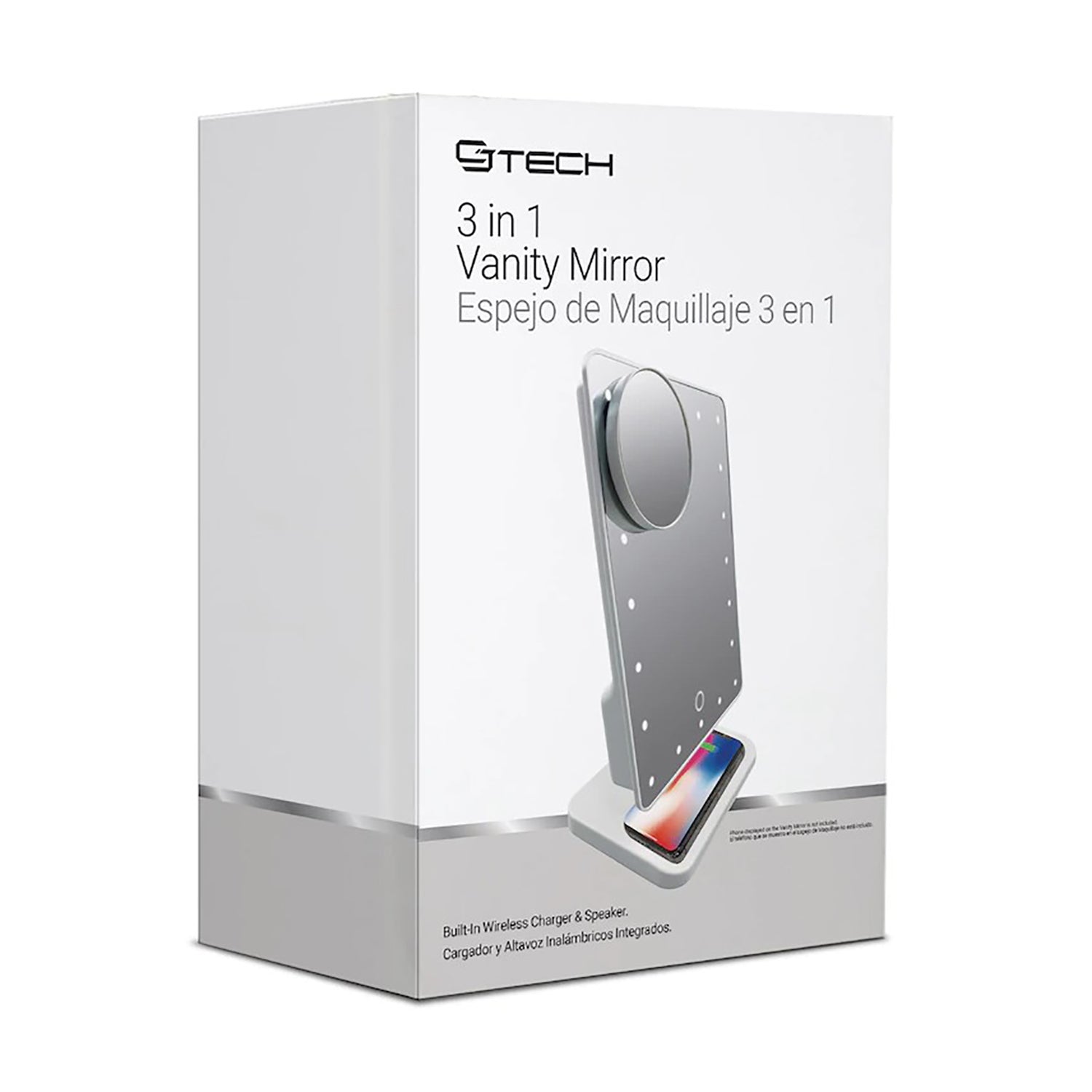 Integrated wireless charger: Easily charge your phone by placing it on the base of the mirror.