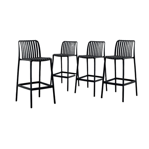 Bring elegance and practicality to your spaces with the Summer bar chairs, designed to adapt to both indoor and outdoor use. Made of high-quality plastic, they offer exceptional stability, long-lasting resistance to bad weather and a modern striped design that fits perfectly with any type of decoration. This set of 4 chairs is ideal for families, events or any space...