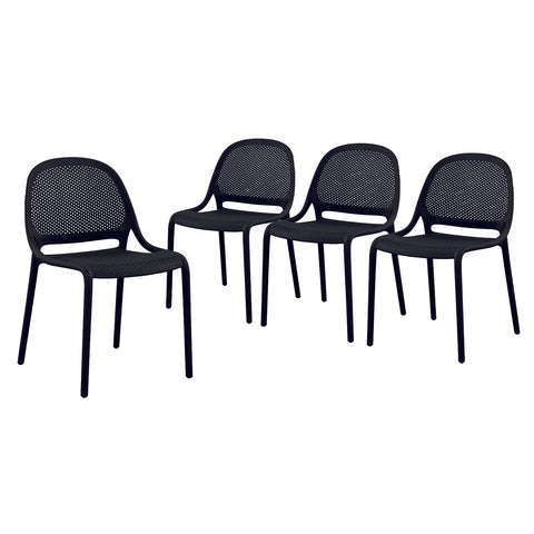 Transform your dining space with the Summer set of 4 armless dining chairs. These chairs combine modern design, functionality and robustness, ideal for both indoor and outdoor use. Made of high-quality plastic, they offer excellent durability and are resistant to humidity, UV rays and temperature variations, perfect for all seasons. Stackable and lightweight, they are easy to store, optimizing space...
