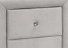 This upholstered nightstand demonstrates how minimalism can be both chic and sophisticated. The timeless and contemporary design emphasizes clean, rectangular lines and smooth surfaces. This bedroom accent features a foam-padded plywood frame, upholstered in light grey velvet-look fabric. The chrome-finished metal drawer knobs provide a contrast to this upholstered side table as an additional style element. This nightstand also features two storage drawers, giving you more places to store items at your bedside. This collection includes a matching bed (available in either Queen, Twin or Full size) which is sold separately.