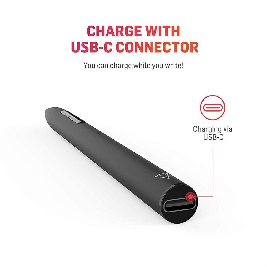 . Charging with USB-C connector: you can charge while you write. A 5 minute quick charge provides 1 hour of battery life. A full charge provides 10 hours of working time.
