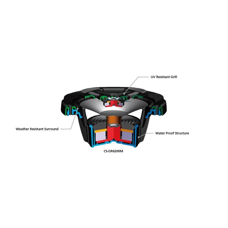 JVC-CS-DR6200M Marine/ MotorSport 6-1/2" 2-Way Coaxial Speakers featuring Water Resistant Woofers 150W, Black