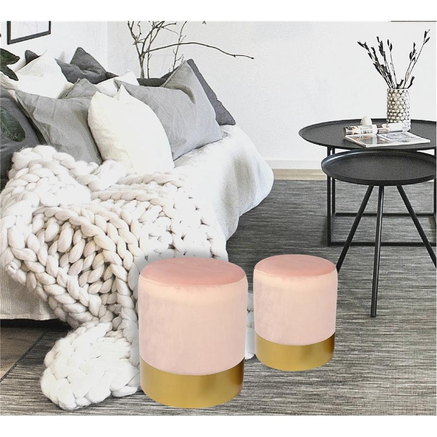 Jessar - Ottoman / Footstool, Round, From the Lounge Collection, Set of 2, Pink VelvetItem: 76-6-01525