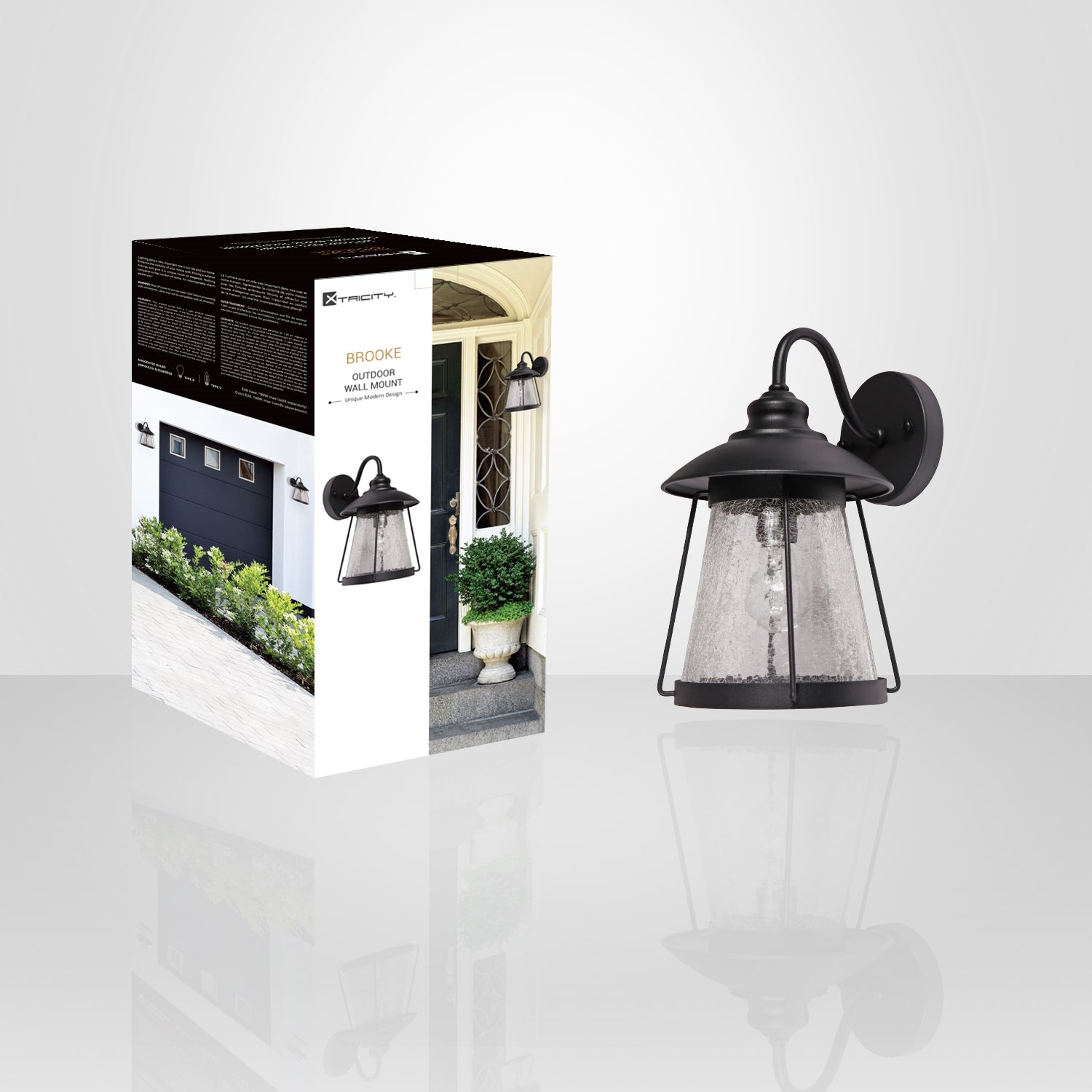 Transform your outdoor space with the Xtricity Outdoor Wall Light from the Brooke Collection. Boasting a modern design, this black outdoor wall light adds contemporary elegance to your facade. Equipped with an E26 base, it requires a 100W max bulb (not included) to diffuse a warm light. The Brooke Collection's black finish provides striking contrast and weather resistance, ensuring durability in all conditions. Create a welcoming and stylish atmosphere in your outdoor space with this wall light that combines functionality and aesthetics.