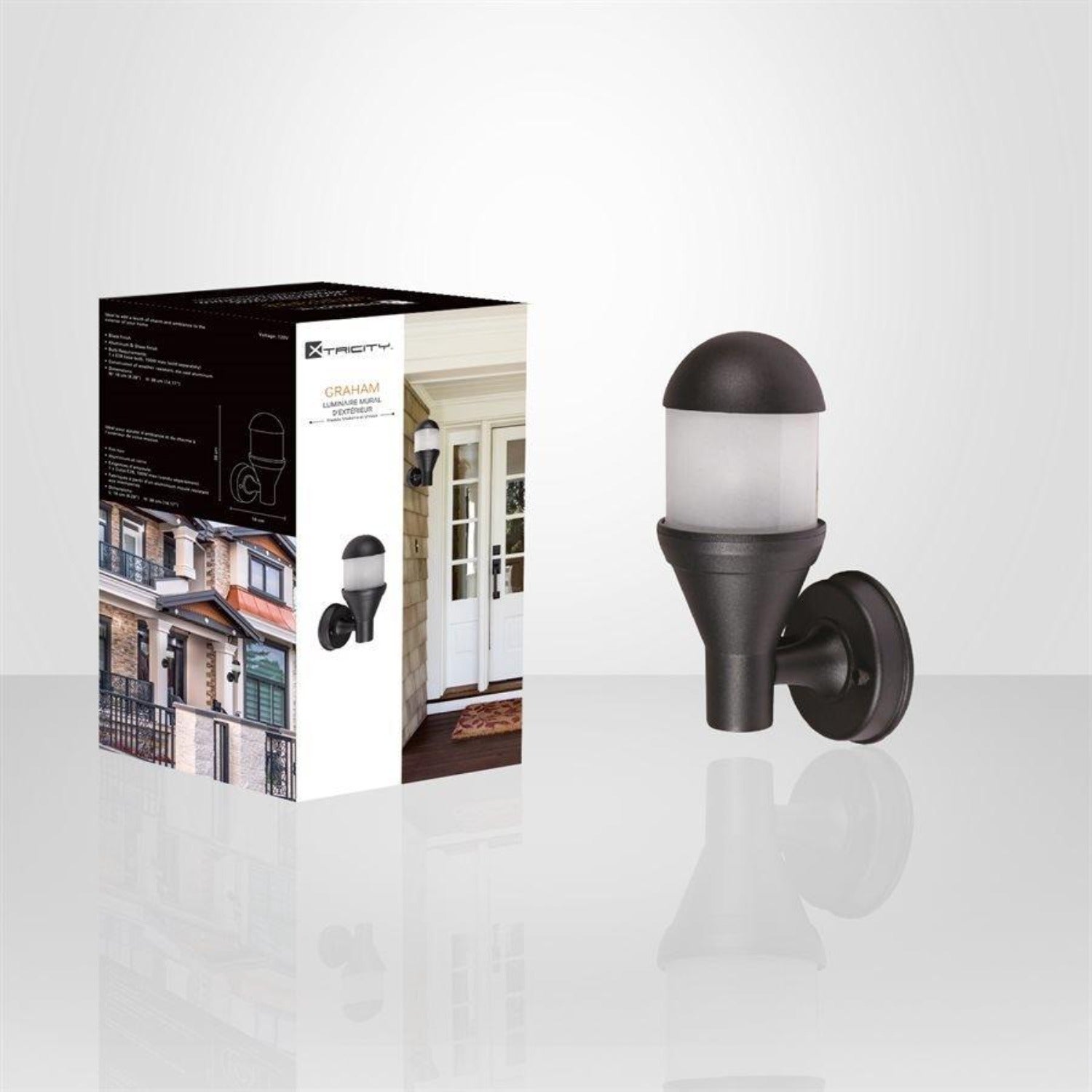 Transform your outdoor space with the Xtricity Outdoor Wall Light from the Graham Collection. This outdoor wall light, featuring a sophisticated black finish, is the perfect element to enhance the aesthetics of your facade. Equipped with an E26 base, it requires a 100W max bulb (sold separately) to illuminate your entrance or patio. The Graham Collection combines functionality and style, offering an elegant and durable solution for lighting your exterior. Create a welcoming and chic atmosphere with this modern design light fixture.