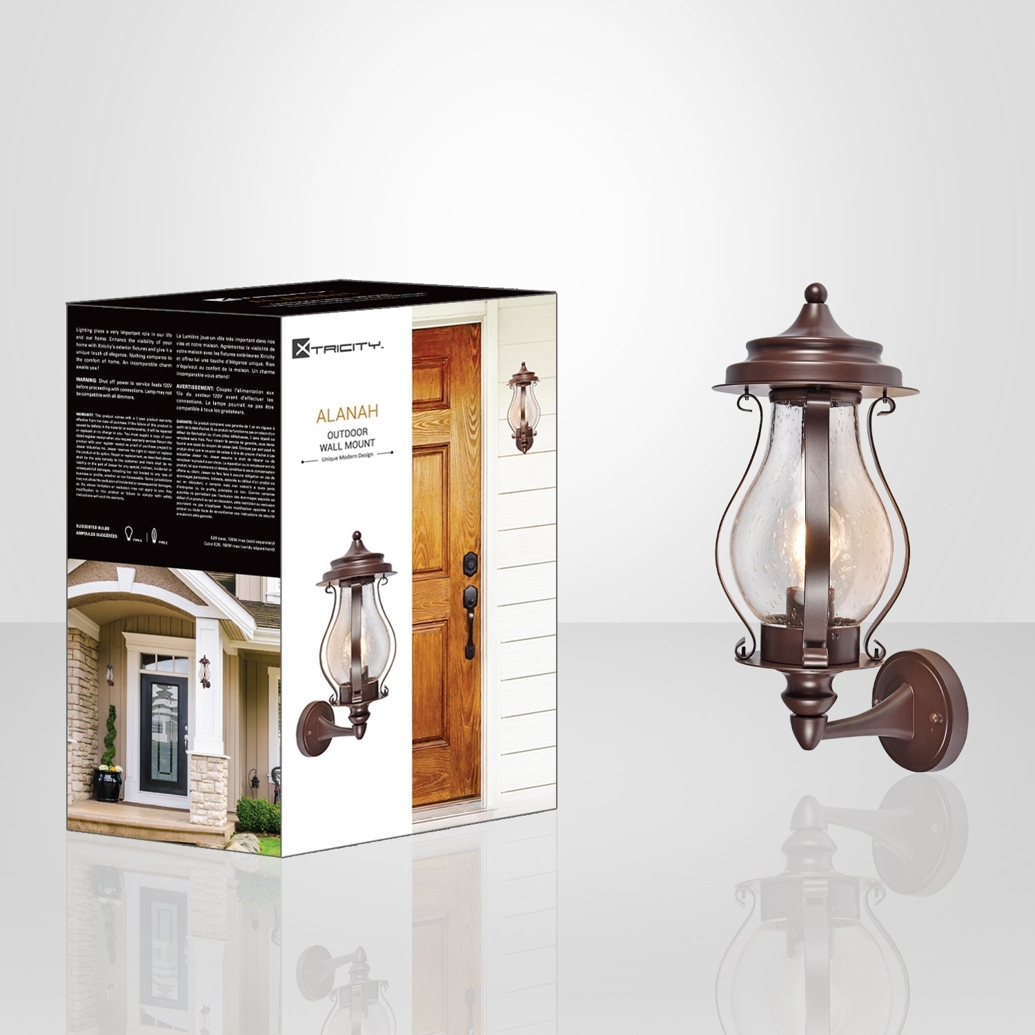 Transform your outdoor space with the Xtricity wall light from the Alanah collection. This brown finished outdoor wall light brings rustic elegance to your home. Equipped to accommodate a 100W E26 bulb (not included), it offers powerful lighting. Its sturdy design resists bad weather, making it an ideal choice for outdoors. Whether you install it on your terrace, your porch or your entrance, the Alanah light combines style and functionality to create a welcoming ambiance in your outdoor space.