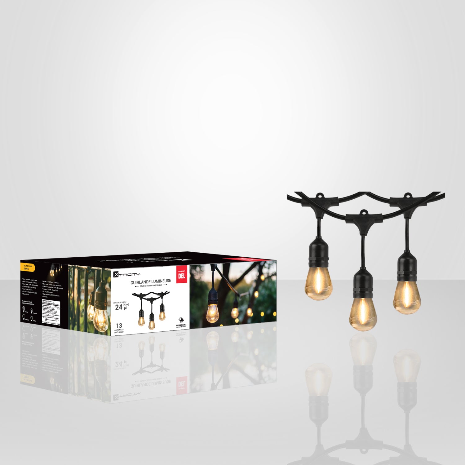 Discover the Xtricity Outdoor LED String Lights, the perfect addition to illuminate your spaces with a touch of warmth and elegance. Measuring 24 feet long, this garland is ideal for both indoor and outdoor use thanks to its waterproof design. Equipped with 12W LEDs, it offers an impressive luminous flux of 840 lumens, creating a soft and welcoming atmosphere with a color temperature of 2200K Soft White.