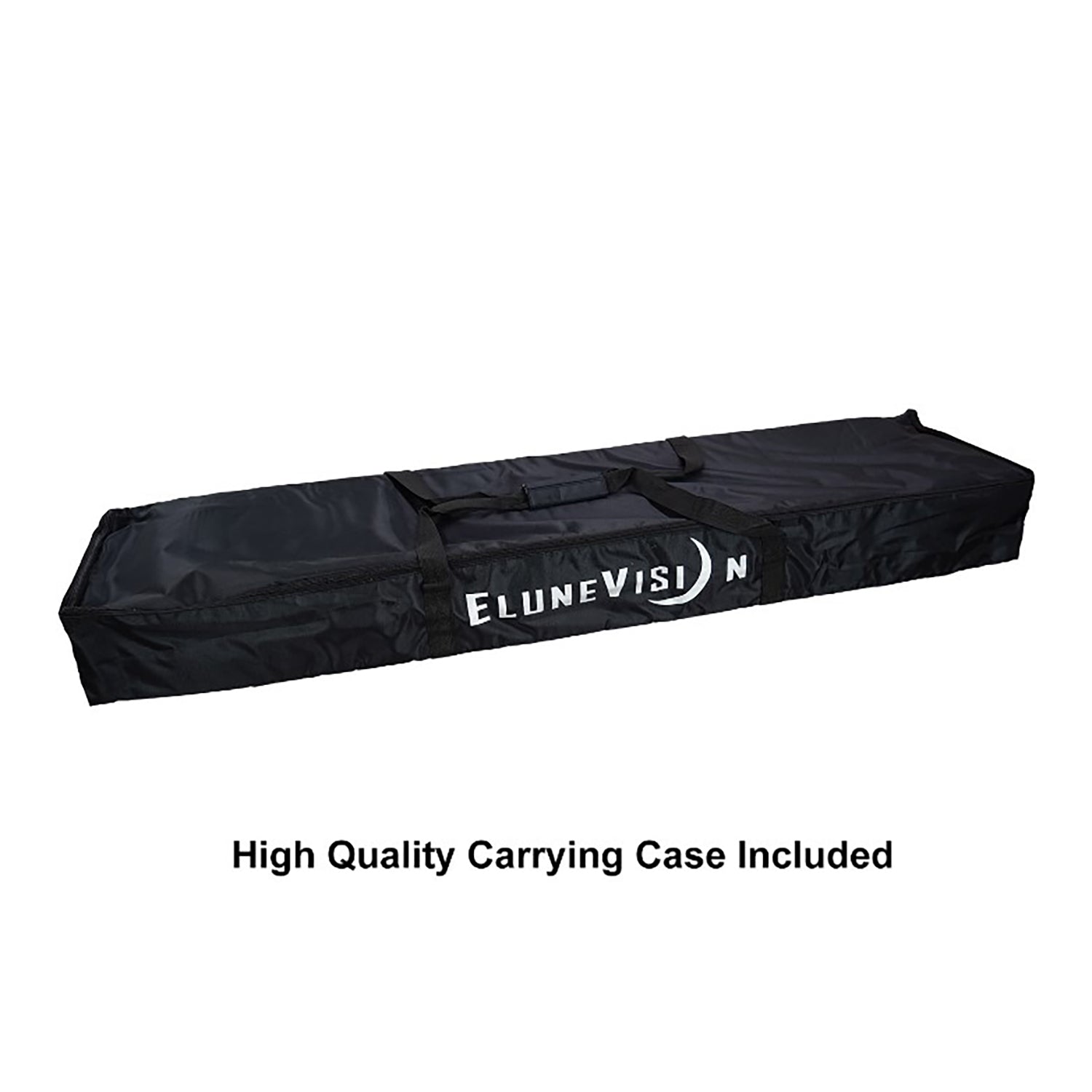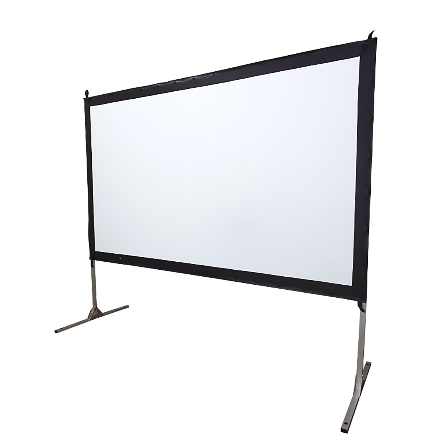 Discover the EluneVision Movie Master outdoor foldable projection screen, ideal for movie evenings in the garden or outdoor presentations. Lightweight and portable, this durable display offers enhanced contrast with black borders and high-performance material for precise image reproduction. Easy to install without tools, it is designed for outdoor use with its included mounting options and nylon carrying bag.