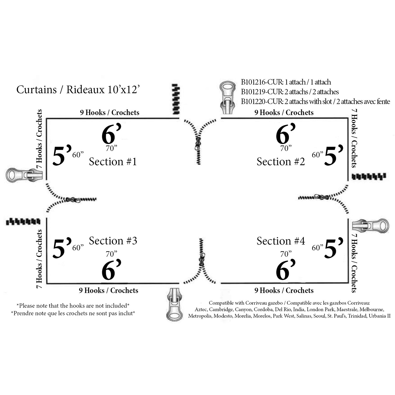F. Corriveau International - Curtain for Gazebo 10' x 12', Water resistant, BlackItem: 101-B101220-CUR-140