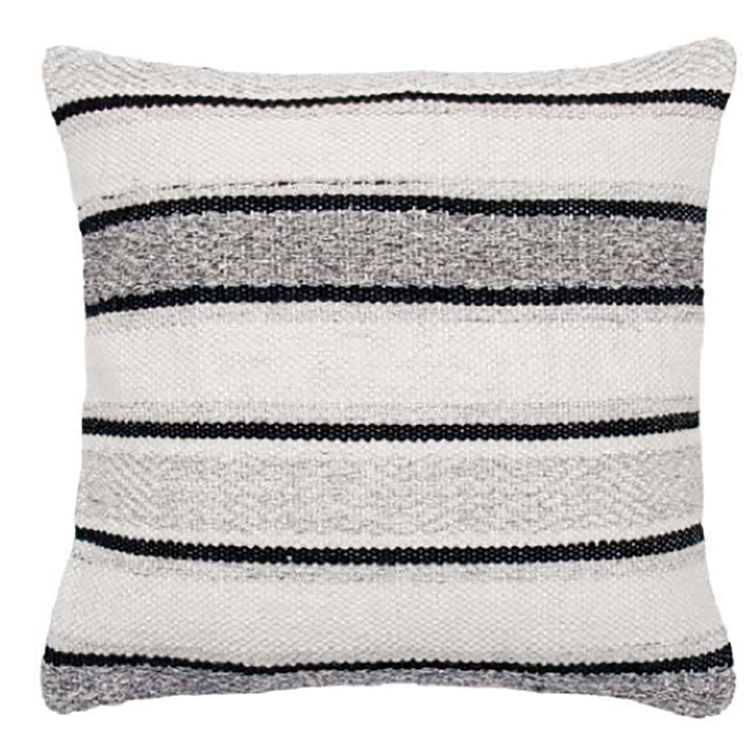 Discover the ultimate in comfort with the Element striped cushion from F. Corriveau International. Measuring 18" x 18", this indoor/outdoor cushion offers an extra layer of water-repellent fabric for added durability. Made from 100% recycled bottles and spun into polyester yarn, this cushion is water, UV and abrasion resistant. With its hidden zipper and timeless black, gray and natural stripes, it instantly enhances your decor.
