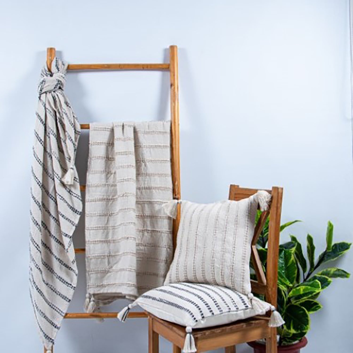 F. Corriveau International - Natural Striped Throw, Indoor/Outdoor, 50" x 60"Item: 101-UTH5060-NAT-018
