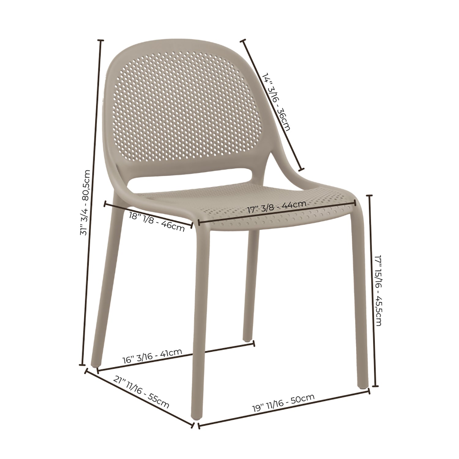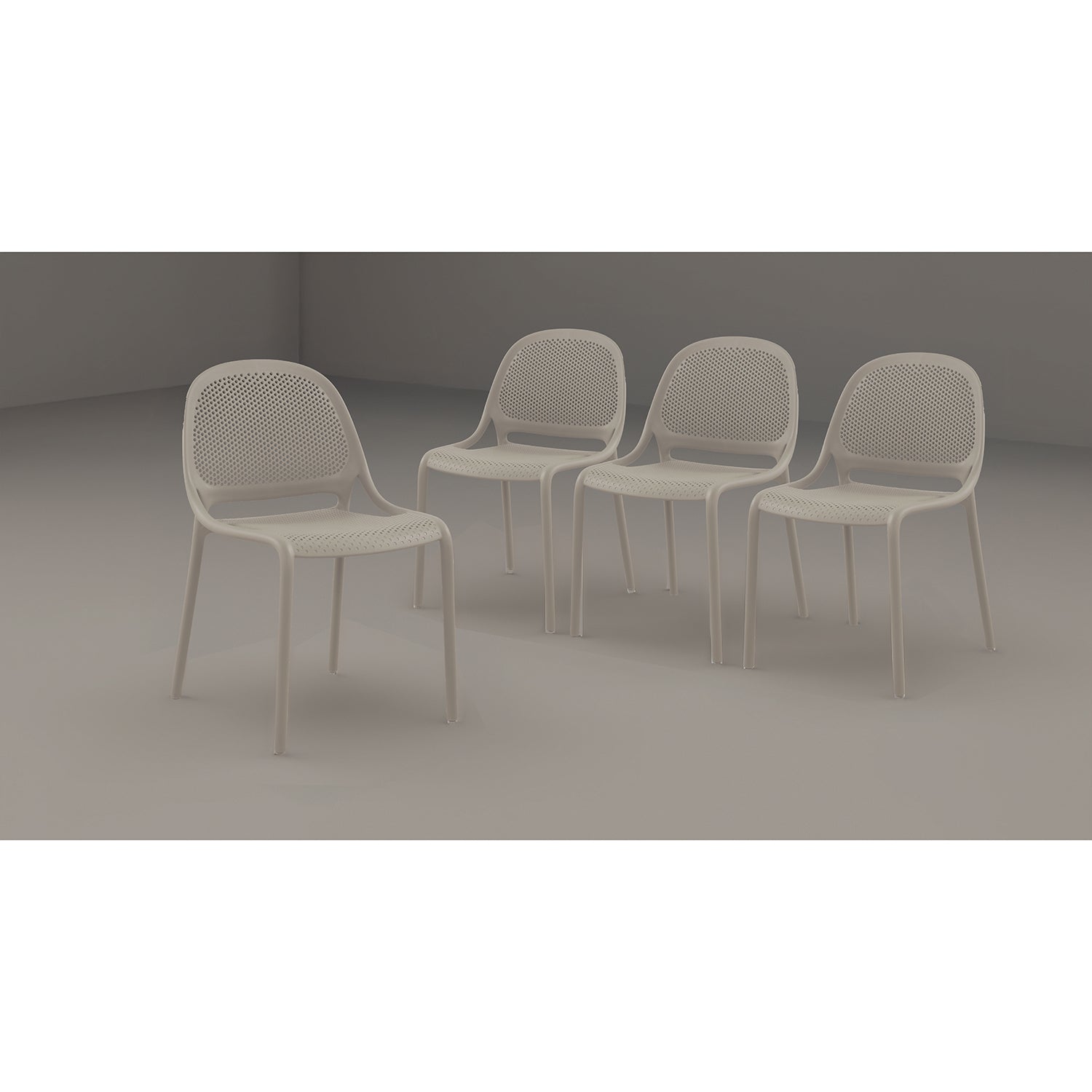 Transform your dining space with the Summer set of 4 armless dining chairs. These chairs combine modern design, functionality and robustness, ideal for both indoor and outdoor use. Made of high-quality plastic, they offer excellent durability and are resistant to humidity, UV rays and temperature variations, perfect for all seasons. Stackable and lightweight, they are easy to store, optimizing space in small environments. Each box contains 4 chairs, an economical and practical choice for setting up a dining area, a terrace or a reception. Combine style and practicality with this versatile set designed for modern homes.