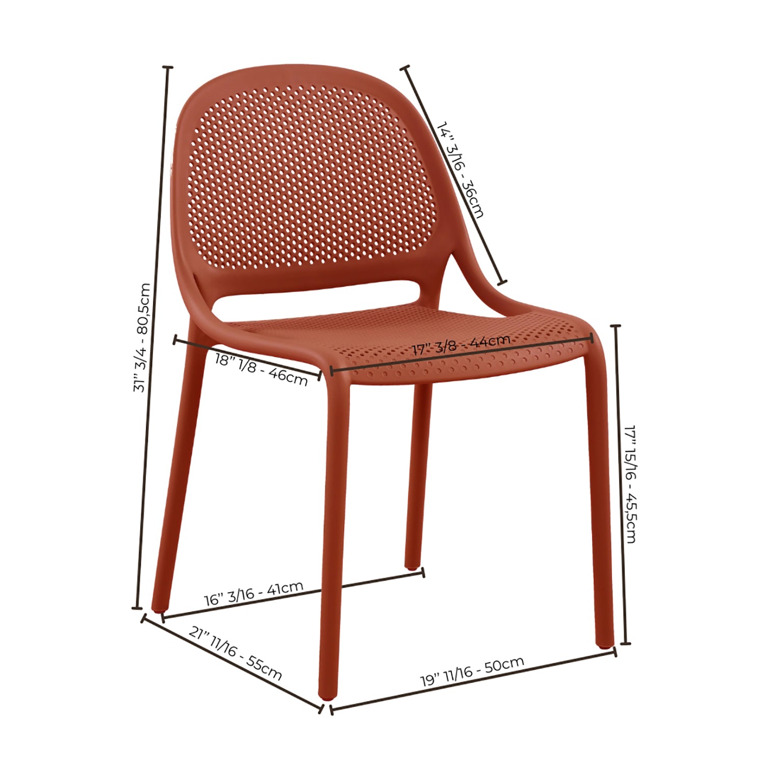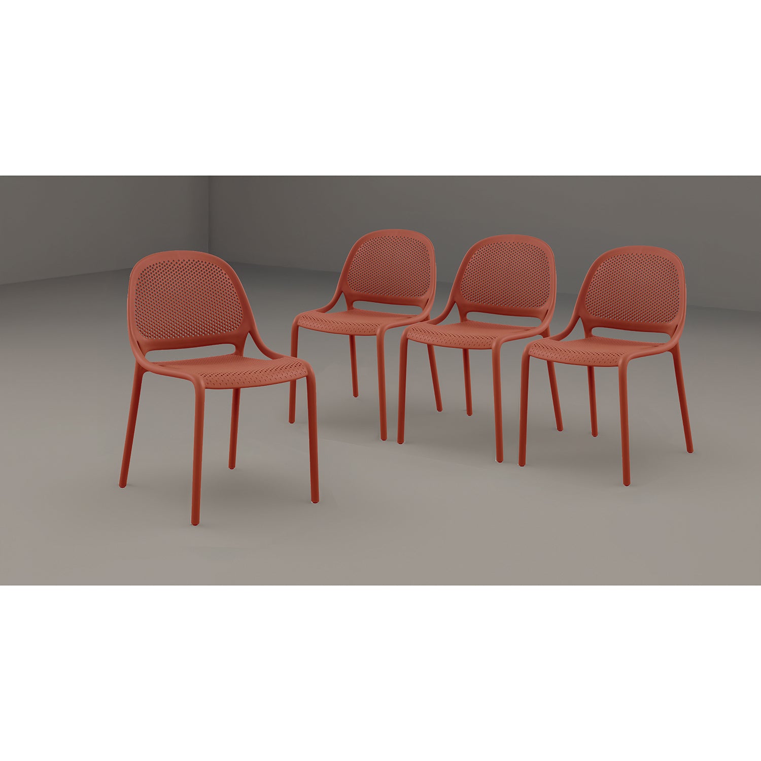 Transform your dining space with the Summer set of 4 armless dining chairs. These chairs combine modern design, functionality and robustness, ideal for both indoor and outdoor use. Made of high-quality plastic, they offer excellent durability and are resistant to humidity, UV rays and temperature variations, perfect for all seasons. Stackable and lightweight, they are easy to store, optimizing space in small environments. Each box contains 4 chairs, an economical and practical choice for setting up a dining area, a terrace or a reception. Combine style and practicality with this versatile set designed for modern homes.