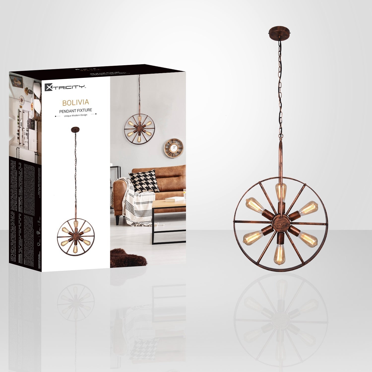Make your space unique with the pendant light from the Bolivia Collection by Xtricity. Its rusty finish brings a touch of rustic charm. This pendant light, requiring 6 E26 bulbs of 40W max (not included), diffuses a warm light. With a cord length of 150 cm (60.0''), it offers installation flexibility. Let the Bolivia Collection add a welcoming and elegant ambiance to your interior.