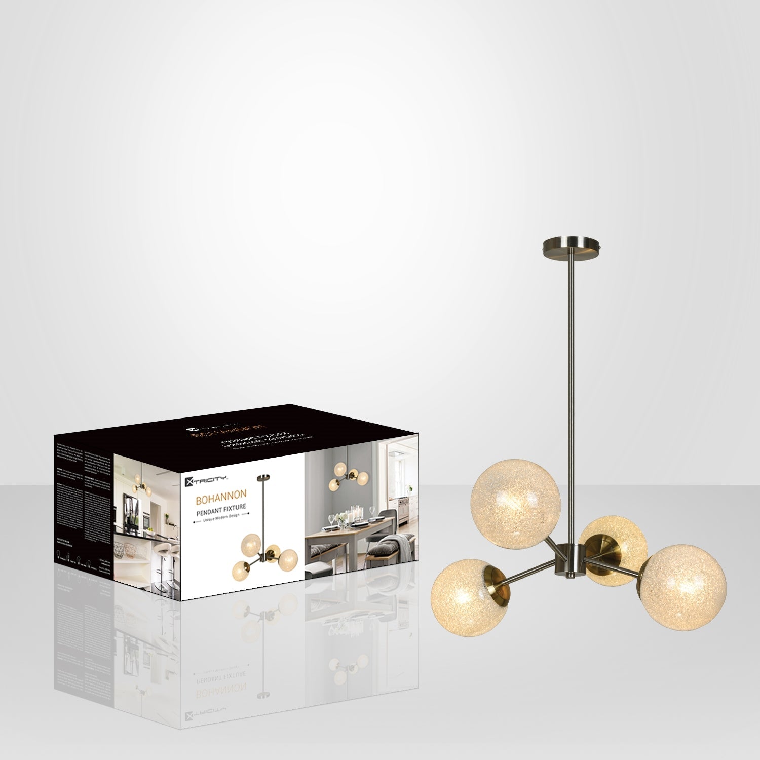 Add a touch of elegance with the Bohannon Collection 4-Light Pendant by Xtricity. Its silver design, combined with the nickel and antique brass finish, creates a perfect balance between modernity and tradition. The 4 E26 bulbs (not included), with a maximum power of 40W each, allow you to personalize the lighting according to your preferences. With an adjustable cord length of 122 cm (48.0''), this pendant light offers versatility and style. Perfect for illuminating your space while adding a contemporary and timeless touch. Transform your interior with the Bohannon collection.