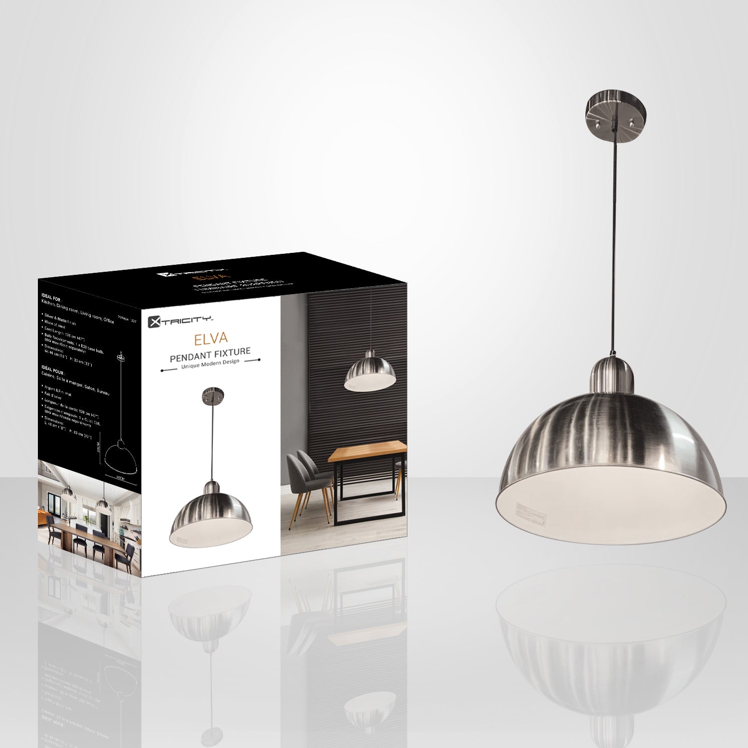 Transform your space with the pendant light from the Elva collection by Xtricity. The silver and matte finish offers a modern and sophisticated aesthetic. The required E26 bulb (not included), with a maximum output of 60W, creates focused, elegant lighting. The contemporary design of the Elva pendant fits any interior style, adding chic brightness to your space. Adjustable cord length allows for custom installation. Easy to install, this pendant light is the ideal choice for a bright and stylish atmosphere.