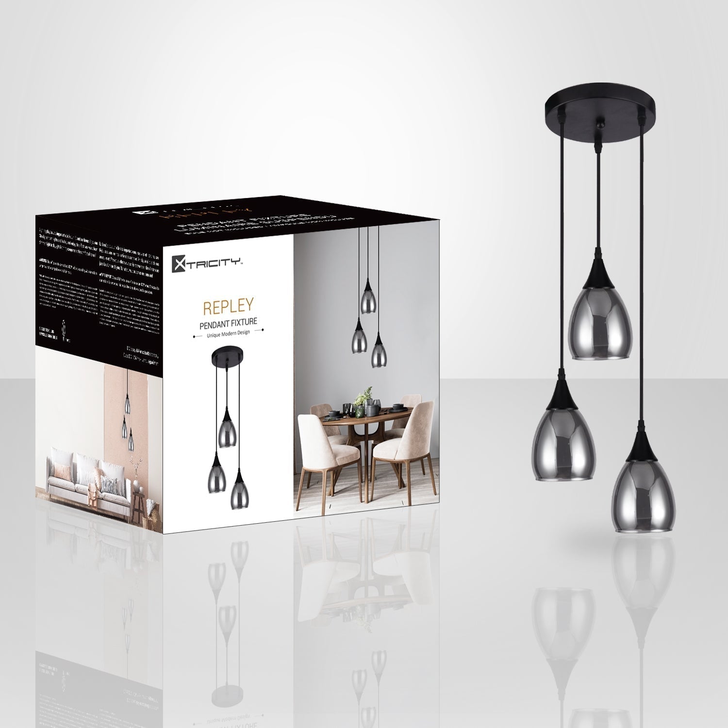 Transform your space with the Xtricity 3-light pendant from the Repley collection. The sleek black finish adds a touch of sophistication to your decor. Required E12 bulbs (5W max, sold separately) diffuse subtle light, creating a welcoming atmosphere. With a 100cm adjustable cord, this fixture offers installation versatility. Ideal for living spaces, dining rooms or work spaces. Opt for modern elegance with this versatile pendant light.
