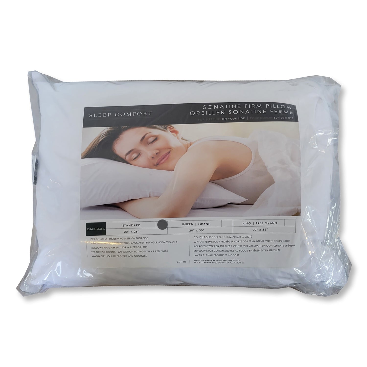 Cotton House - Sonatine Pillow, Firm Support, Side Sleeper, Standard Size, Made in Canada