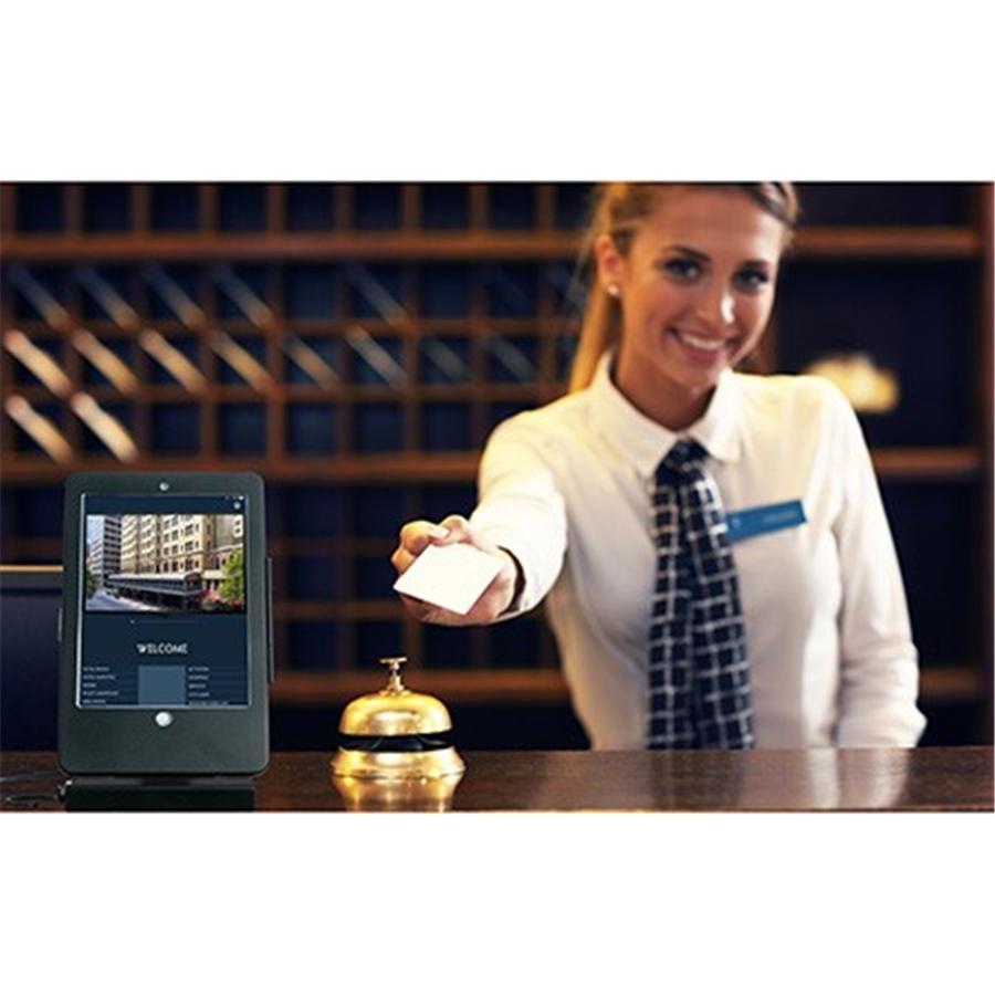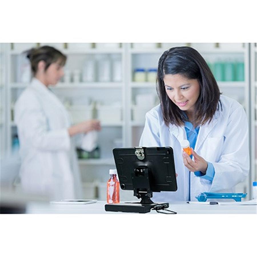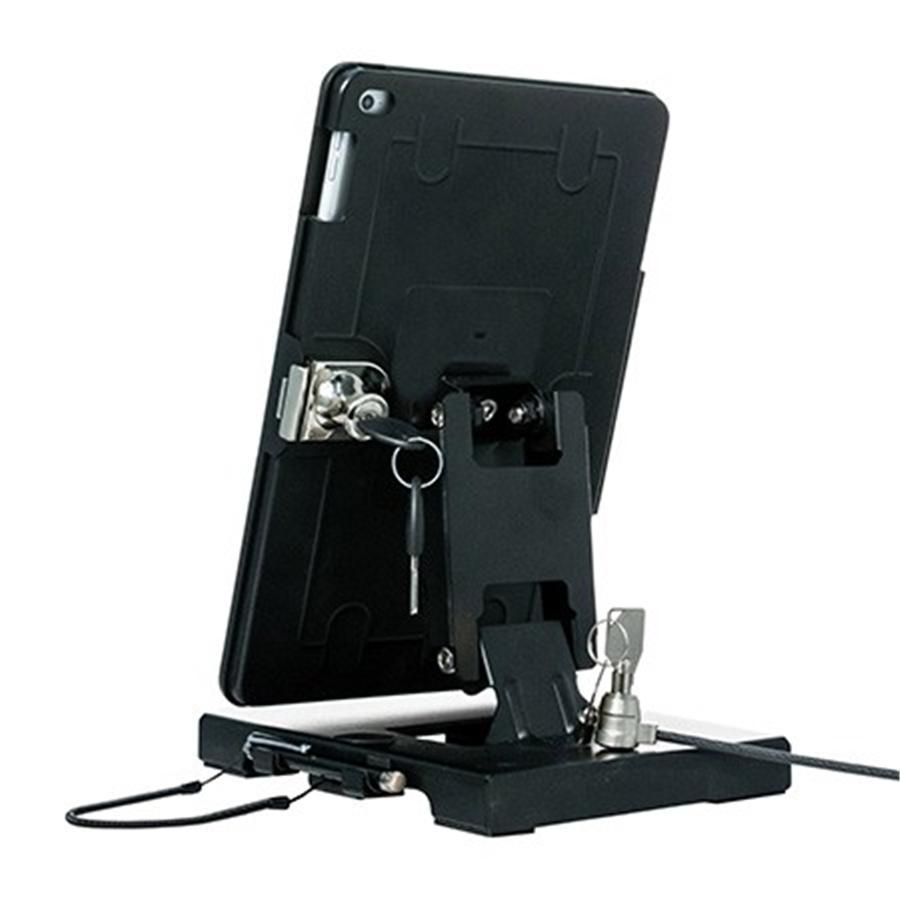 This inventive lockable iPad stand gives you unbeatable anti-theft protection as well as many angle adjustment options. Optimized to save space, the stand can be held almost flat against your counter surface or wall, or can be adjusted vertically. The sturdy metal collar includes a pair of flexible hinges, while the iPad case features 360-degree rotation for easy displays in portrait and landscape mode. The case also offers a powerful key and key security system and uses a multi-faceted cable management system to keep the game out of sight while charging your device. For additional protection, the bracket includes a galvanized steel safety cable that attaches to the base of the bracket or to the back of the housing. The padded support base can be mounted on your counter or wall with the included hardware.
