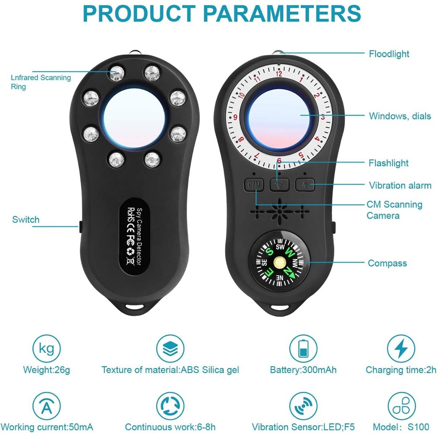 - Quick Scan: The infrared scanner uses infrared scanning light combined with LED light to help you quickly scan the mini hidden camera.