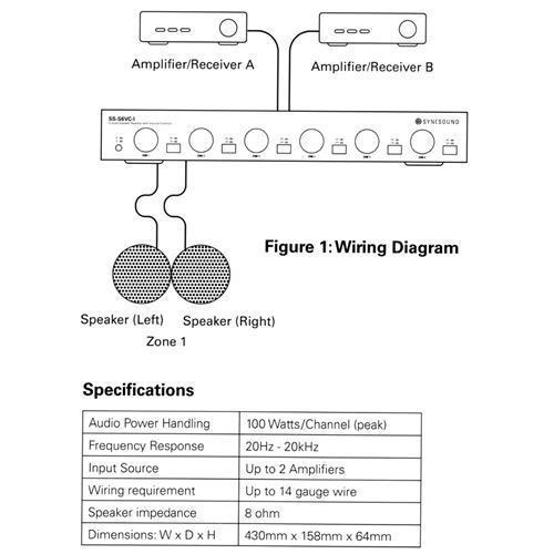 The SS-S6VC-I is a switchable dual source speaker selector with individual volume controls for 6 different zones. A/B speaker selector allows users to alternate between two different amplifiers in each zone.