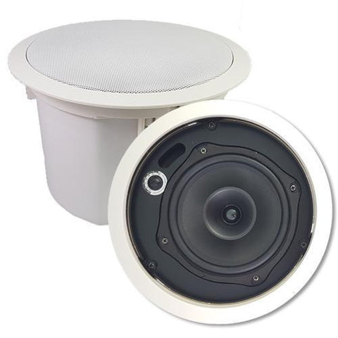 PROLOGUE In Ceiling Speaker 8" With Whizzer Cone 15Watts Commercial Type White Commercial ceiling speaker. 8'' woofer with whizzer cone. Comes complete with grille, back box, transformer and connecting block. Can be used with 70v network or 8 ohms applications. Four power settings for 70v. All metal construction with back can for fire rated installations. Strong screw type connecting block...