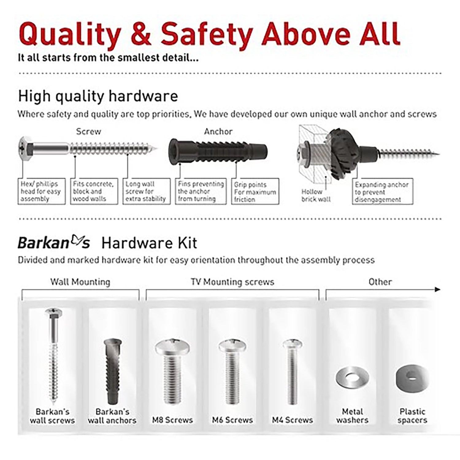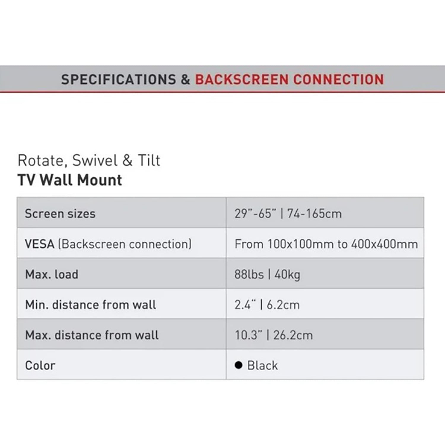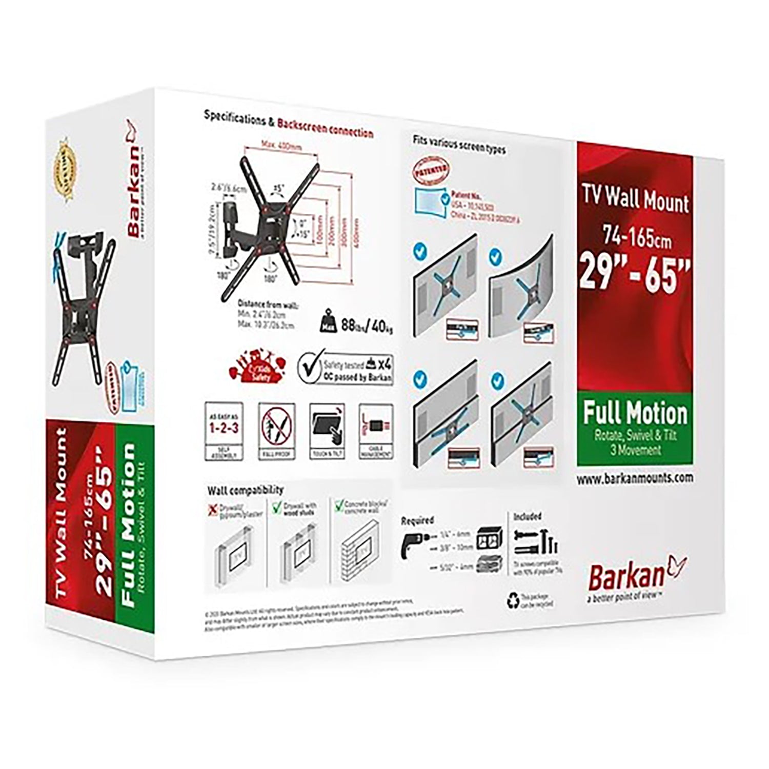 Barkan - Full Motion Wall TV Mount, For Flat or Curved Screens from 29" to 65", Maximum Weight 40kgItem: 78-141548