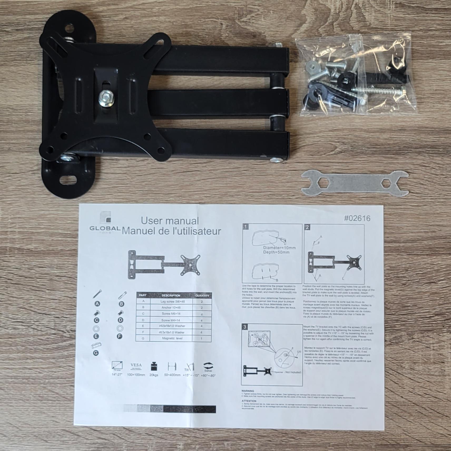 • Manual and Hardware included.