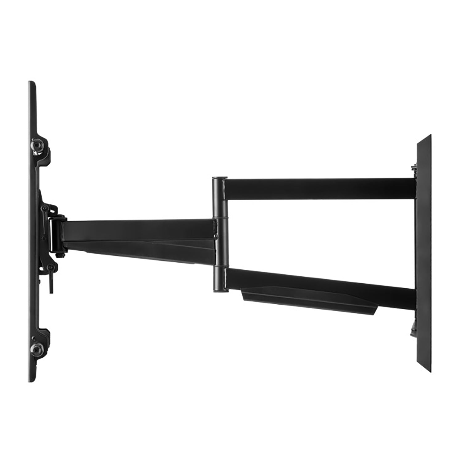 Maximize your space and enjoy total flexibility with the SyncMount full motion dual-stem wall mount. Designed for TVs from 55 to 90 inches, this heavy-duty mount can support up to 150 lbs (68 kg), providing stability and security for even the largest screens. With a solid aluminum arm, this mount offers adjustable viewing angles for an uncompromised viewing experience. Quick-release mounting brackets simplify cable management, while lateral adjustment ensures precise alignment. Once installed, final leveling adjustment ensures a perfectly straight mount the first time. Compatible with wood studs and concrete walls, the SyncMount includes all the necessary hardware for a quick and easy installation.