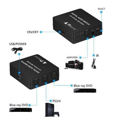 Switch 3X1 For Audio Numeric Cable Toslink Optic Fiber 3 Input To 1 Outputs USB PoweredItem: 05-0180