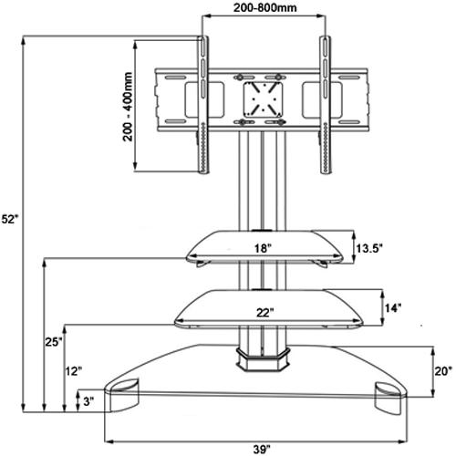 Swivel TV stand with 3 shelves in tempered glass BLACK Up to 52"