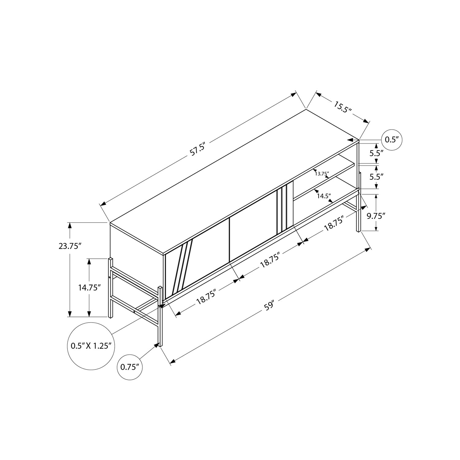 Monarch Specialties I 2734 - Tv Stand, 60 Inch, Console, Media Entertainment Center, Storage Cabinet, Living Room, Bedroom, Black Laminate, Black Metal, Contemporary, ModernItem: 83-2734
