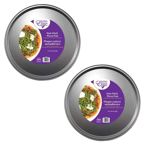 Non-stick and durable carbon steel pizza pans . Set of 2 pizza plates . Diameter of 13.5" (35cm) . Non-stick surface . Made of carbon steel