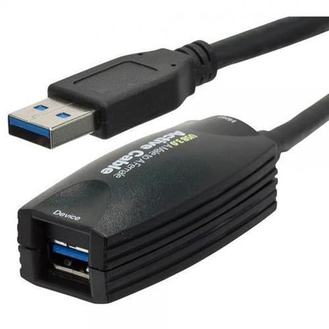 USB 3.0 extension cable with A connectors (Male / Female). Perfect to extend cord of any USB devices with A USB connector. 16 feet (5 M) black color, NEW in its packaging. ACTIVE REPEATER CABLE WITH INTEGRATED BOOSTER Compatible with USB 3.0 / 2.0 / 1.1 Super speed USB 3.0 supports 5Gbps data rate Supports Windows and MAC OS