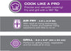 - COOK LIKE A PRO! Precise and versatile cooking! Fry and grill with a 180° flip. AIR FRY - 4.6 L (4.9 Qt) With rapid air frying technology, enjoy a faster and healthier frying experience with little to no oil. GRILL - 9.5 x 9.5” (24 x 24 cm) Perfect for grilling meats, vegetables, and full meals all at once.