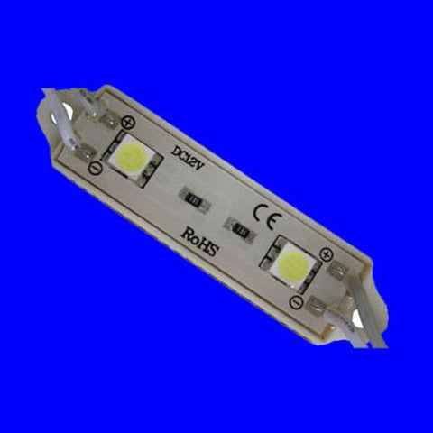 2 LED lights module with single color Color : Blue LED quantity : 2 per module 12V - 0.06A 0.72W Spill resistant (IP65) With 3M auto-adhesive back tape Indoor use only