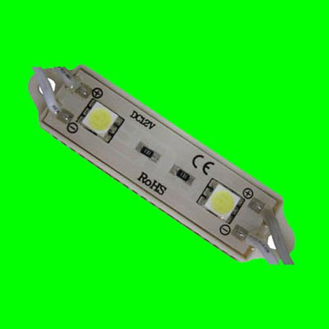 2 LED lights module with single color Color : Cold White LED quantity : 2 per module 12V - 0.06A 0.72W Spill resistant (IP65) With 3M auto-adhesive back tape Indoor use only