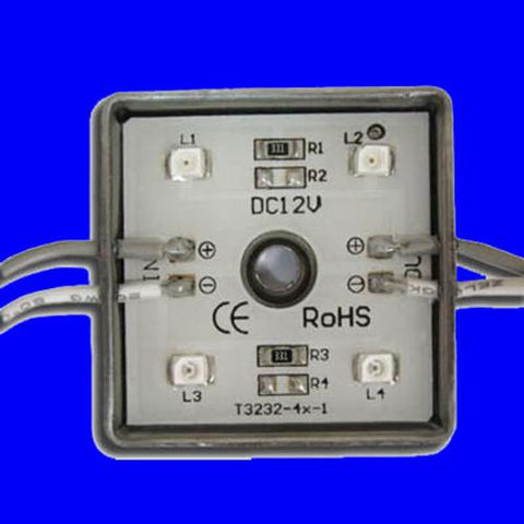 4 LED lights module with single color Color : Blue LED quantity : 4 per module 12V - 0.12A 1.44W Spill resistant (IP65) With 3M auto-adhesive back tape Indoor use only