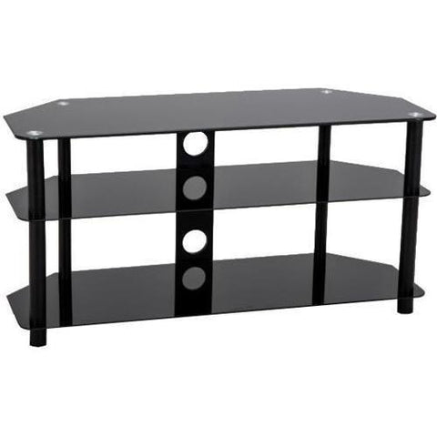 Impressions BTV-202 TV cabinet with 3 shelves made of tempered glass. Dimensions: 119 cm x 38 cm x 50 cm (47" x 15" x 20") 3 black tempered glass shelves black OPAQUES and uprights. Tempered glass shelf 8mm thick for top shelf and 5mm shelf for middle and bottom shelves. Can withstand up to 56 kg / 125 lbs Solid...
