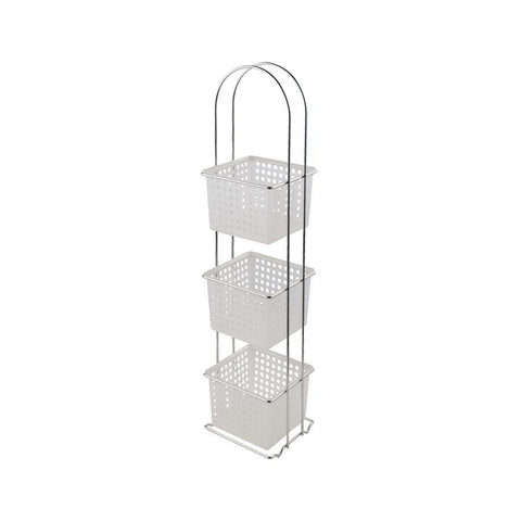 Store your hairbrushes, cleanser, cosmetics or any other messy product in your bathroom with these 3 tier baskets White colour Dimension: 19 x 19 x 13.5 cm