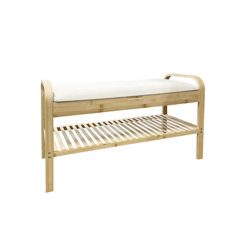 Discover the Jessar Hall Stool with Shoe Storage, designed to combine comfort and functionality. Featuring a natural bamboo frame, this stool brings a stylish and eco-friendly touch to your home. The white fabric upholstered seat makes it easy to sit and put on your shoes. The storage shelf located under the seat is ideal for organizing your shoes, keeping your...