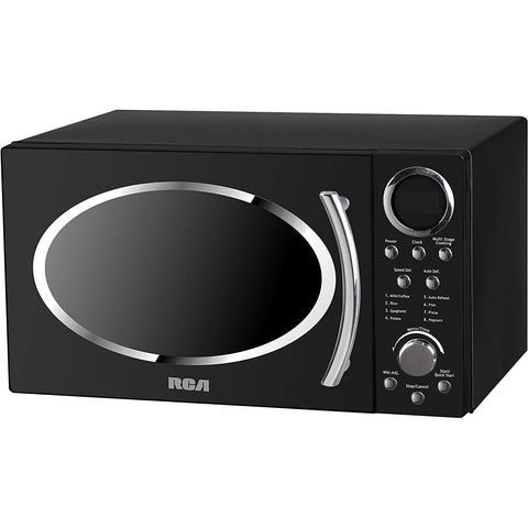 Enjoy cooking and warming food in this stainless steel RCA microwave. This device has 10 power levels and digital touch control. Simple one-touch cooking for popcorn, potato, pizza, frozen dinner and reheating, pizza. Plus keep your child safe with a child safety lock. Benefits .Adjust defrost based on weight and speed .Digital Clock/Timers .Green LED display .6 quick cooking options...