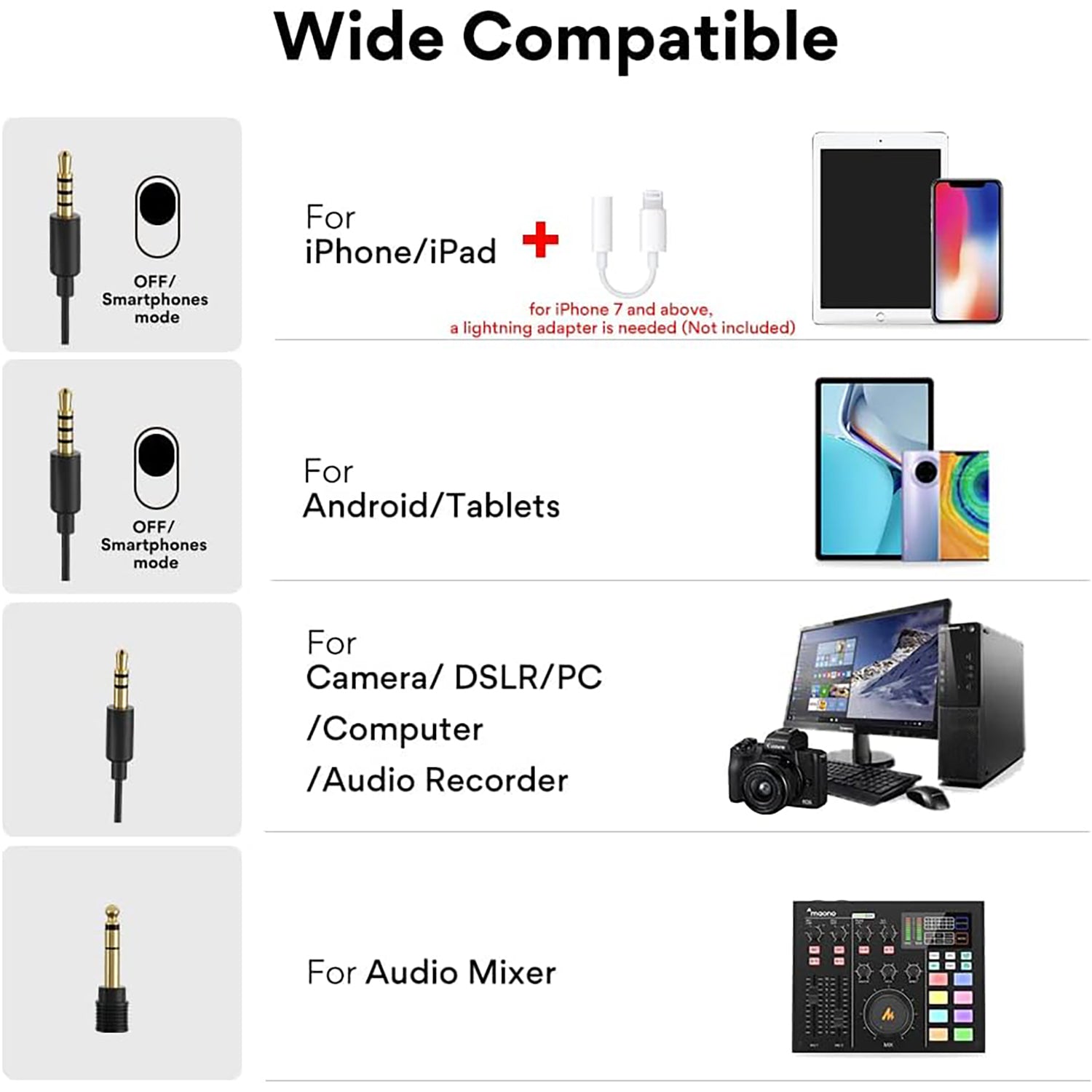 • 236 in Mic Cable: Made of high quality material to reduce signal interference. The 236-inch cable makes the user unrestrained and can be adjusted with Velcro