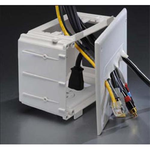 Use Recessed Media Box to install power and low voltage cables from behind your flat panel TV, your amplifier or other audio and video devices to your equipment room or use in your equipment room to organize your incoming audio and video cables. This box is designed for new construction or retrofit installations. The 4-gang flexible cover plate gives the box the clean, finished look you expect.